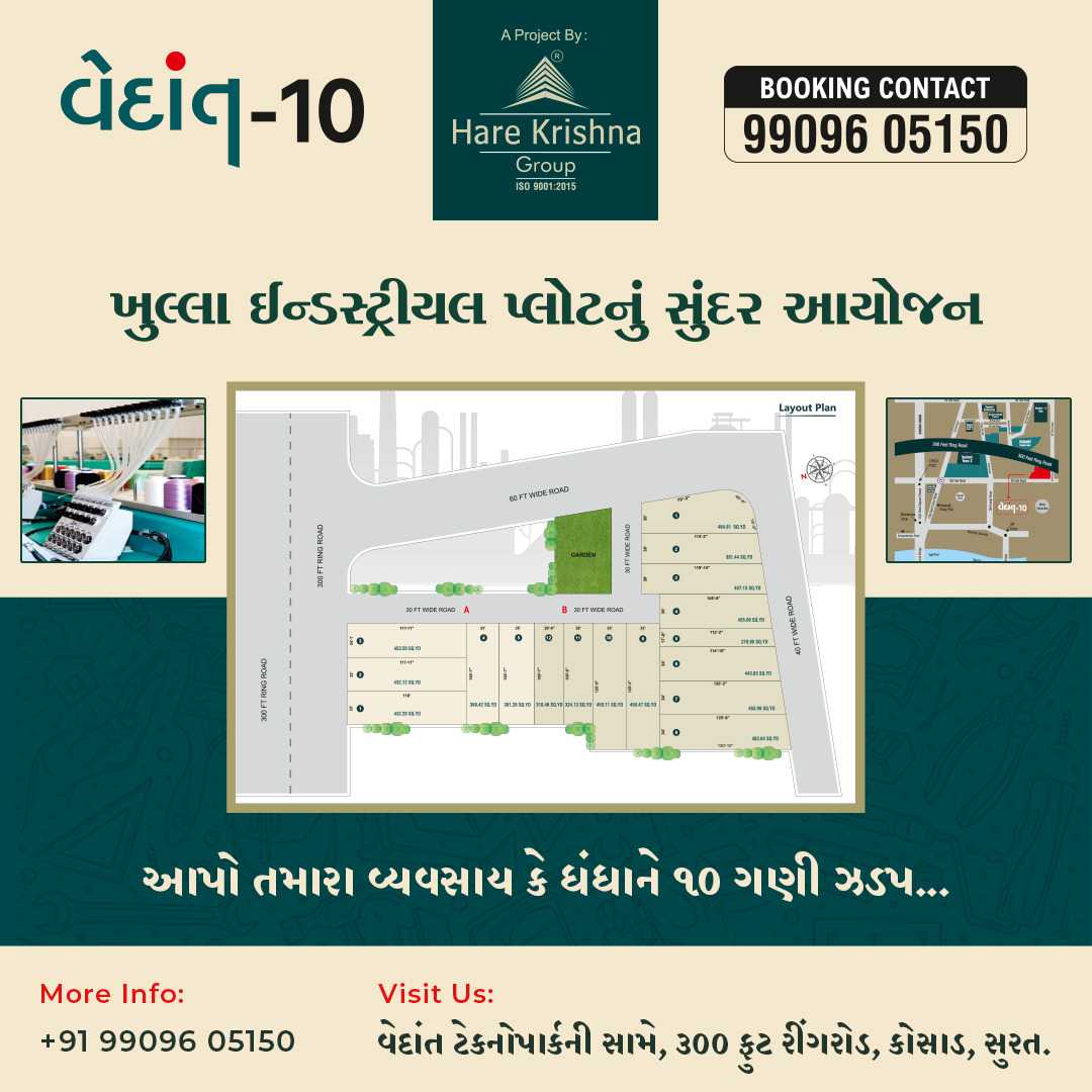 Vedant-10 is the next industrial project after the successful booking of Vedant Industrial Park, Vedant Eco Park, and Vedant-Textile Park series. Project by Vedant Group.